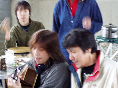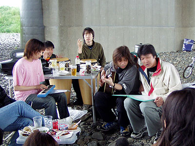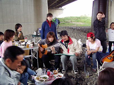 2004年5月16日(日)多摩川河川敷にて空手の二子玉川支部で「新緑の会」を開催したときの模様です。MATAROさんの当時の新しいアシスタント・まっちゃん(松本さんも)参加してくれました。ピアニカを演奏しているのは石飛さんです。この日はサザンオールスターズの彩〜aja〜を一生懸命練習していました。この日も盛り上がった一日となりました。
