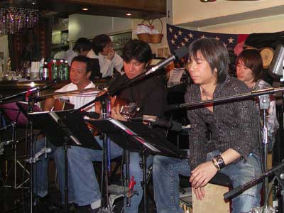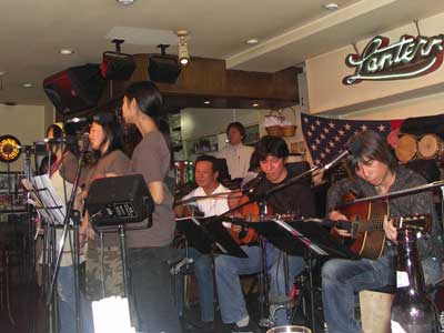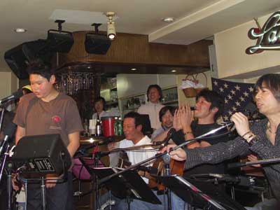 2006年4月15日(日)渋谷区神泉町にあるランタンにて二子玉川支部 第2回記念ライブ「なんの記念やねん?」を開催いたしました。 三沢またろう副会長の華麗なるプレイに、森末慎二会長のあまい歌声・・・。 昨年に引き続き、ライブに、ビンゴゲームに飲んで食べてたいへん盛り上がった一日となりました!