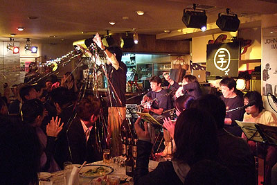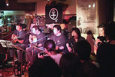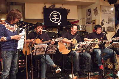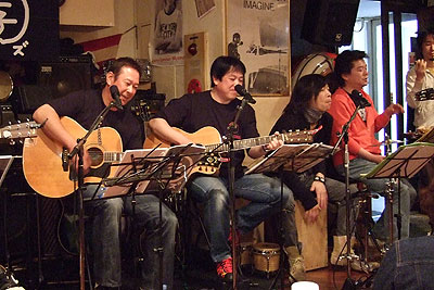 2008年4月20日、ライブハウス「ランタン」にて第4回ライブ「二子玉~ズ オン・ステ~ジ The 4th(だよん)」を開催いたしました。お馴染み、三沢またろう 副会長を筆頭に、森末慎二 会長、そしてサプライズゲストにサザンオールスターズで活躍中の片山敦夫さんをお向かえし、大変盛り上がったライブとなりました。